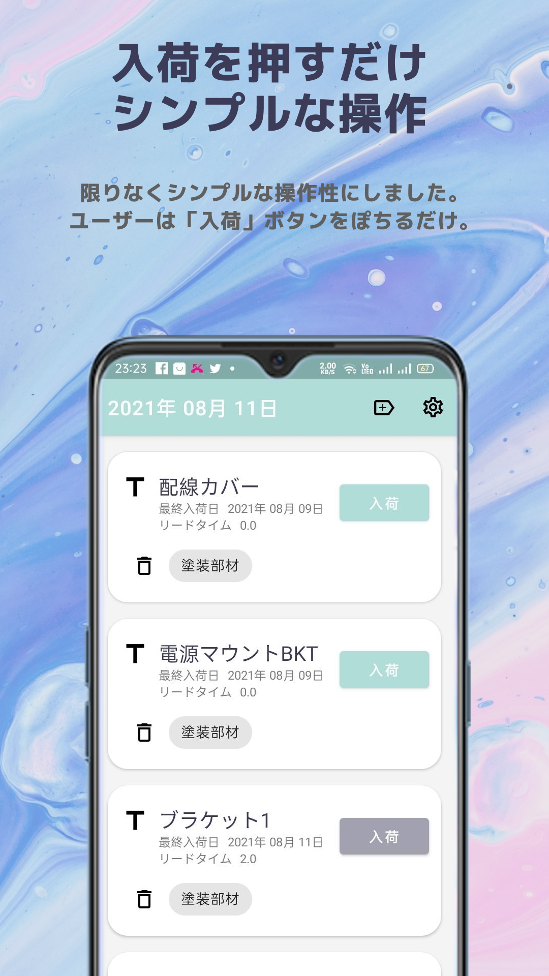部材の管理を簡略化し、在庫数のカウントをしなくても部材の発注日にアプリの操作をするだけで、自動で過去の全体平均リードタイム計算し、次のリードタイムに達した当日に「お知らせ」してくれます。