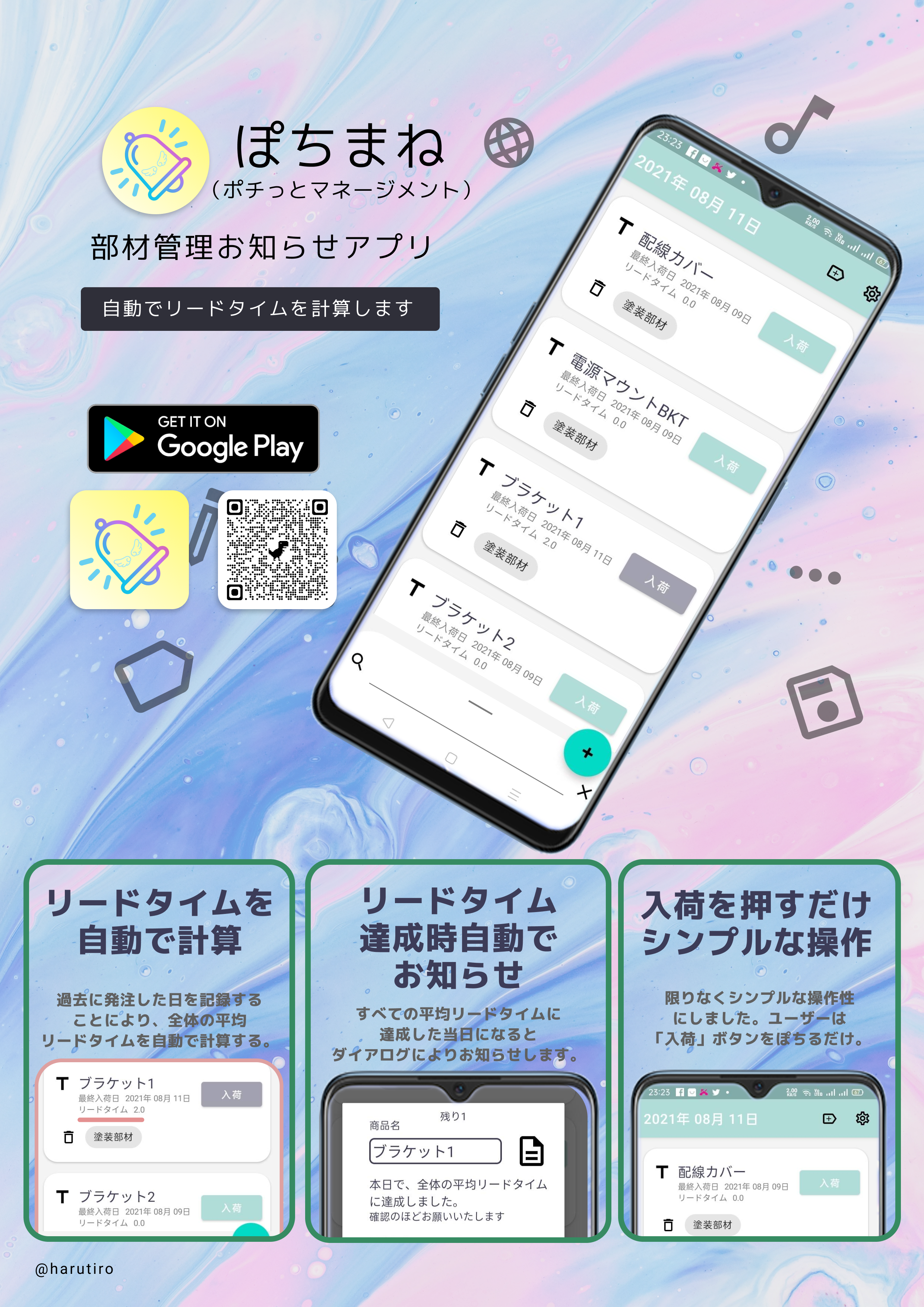 過去に部材を切らしてしまい、上司や同僚に迷惑をかけてしまった事がありませんか? 部材が十分在庫があるにもかかわらず、大量の部材を抱えてしまい自職場だけでなく他職場にも迷惑をかけてしまった事がありませんか? これはそんな人に、部材の管理をお助けするアプリです。 軌道に乗れば、すべての部材の在庫を毎日確認する必要が無くなり、リードタイムに達した部材のみピンポイントで確認するだけでよくなると思います。